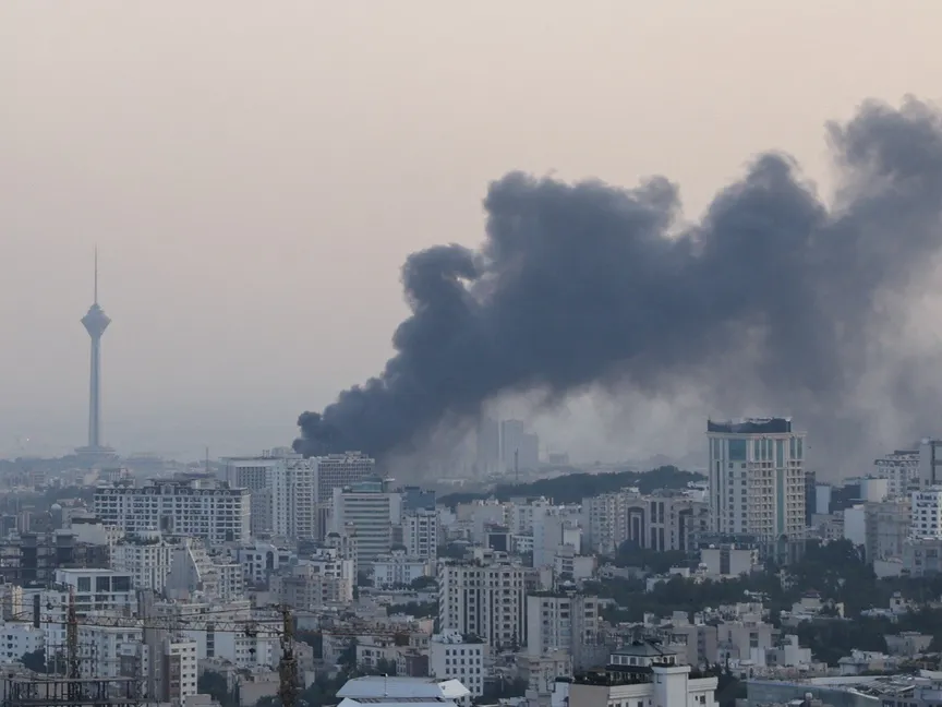 تصاعد الدخان عقب هجوم إسرائيلي على مبنى هيئة الإذاعة والتلفزيون الإيرانية، هيئة الإذاعة والتلفزيون الرسمية في طهران، إيران. 16 يونيو 2025 - Reuters
