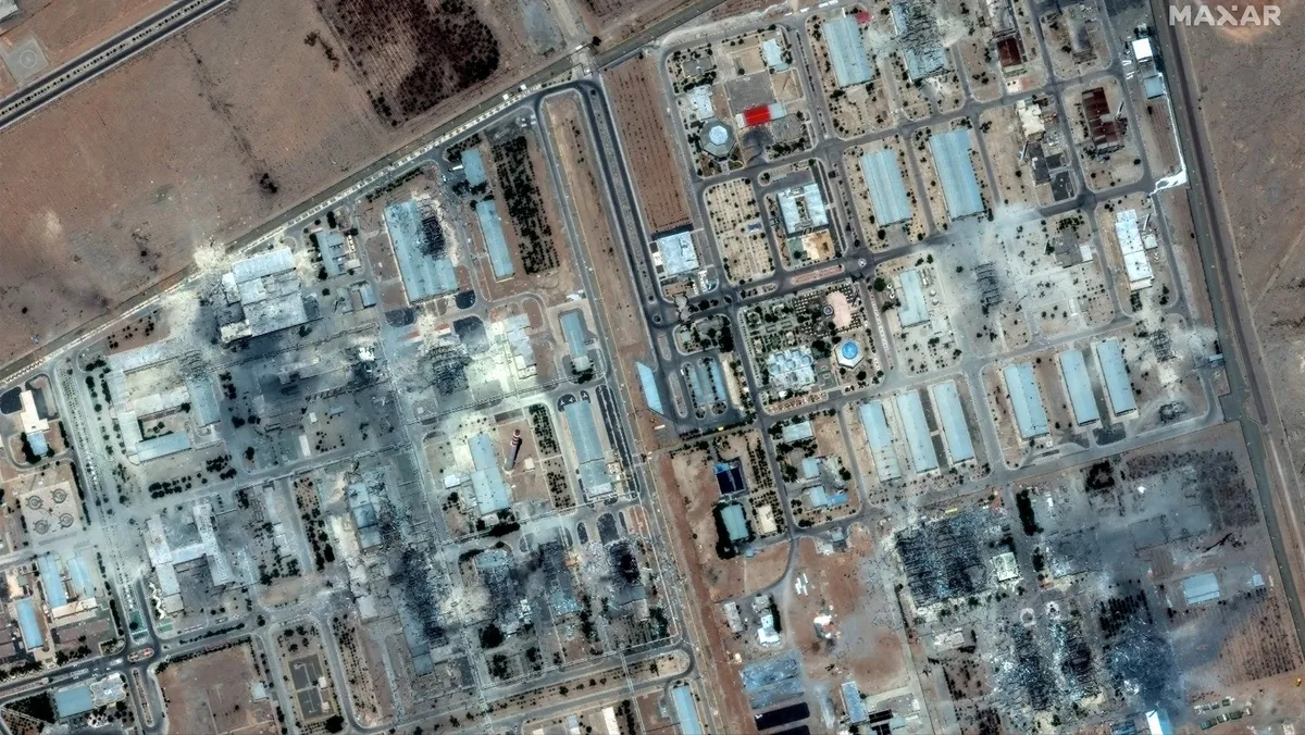 وتُظهر الصور أضراراً جديدة واسعة النطاق بعد القصف الأميركي على منشأة أصفهان، بما في ذلك لمجموعة كبيرة من المباني الصناعية.