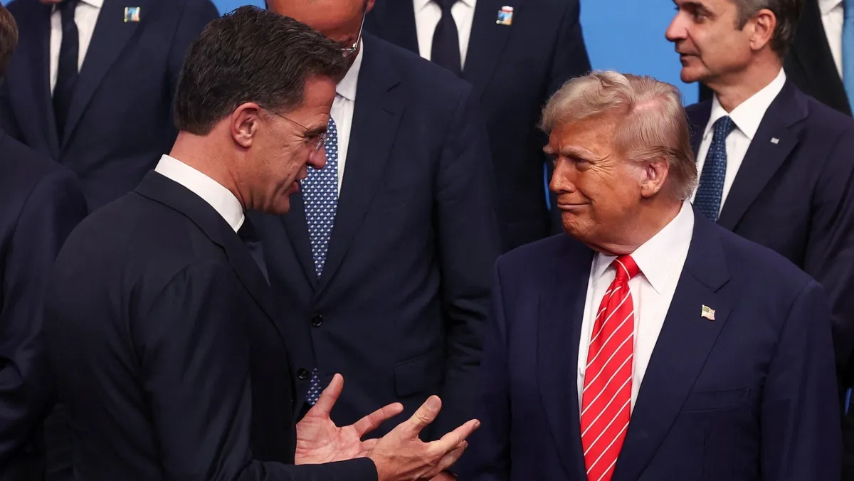 وصف روته ترمب بأنه "صديق جيد" منذ أكثر من عقد وأشاد بدور الرئيس الأميركي في جعل قمة حلف شمال الأطلسي ناجحة من خلال "دفع" أوروبا "أخيراً" إلى تعزيز الإنفاق العسكري.