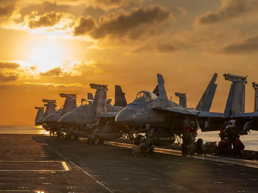 مقاتلات أميركية  على سطح حاملة الطائرات USS Abraham Lincoln خلال الاستعداد لدعم عملية (الغضب الملحمي) التي تستهدف إيران- 3 مارس 2026 - Reuters