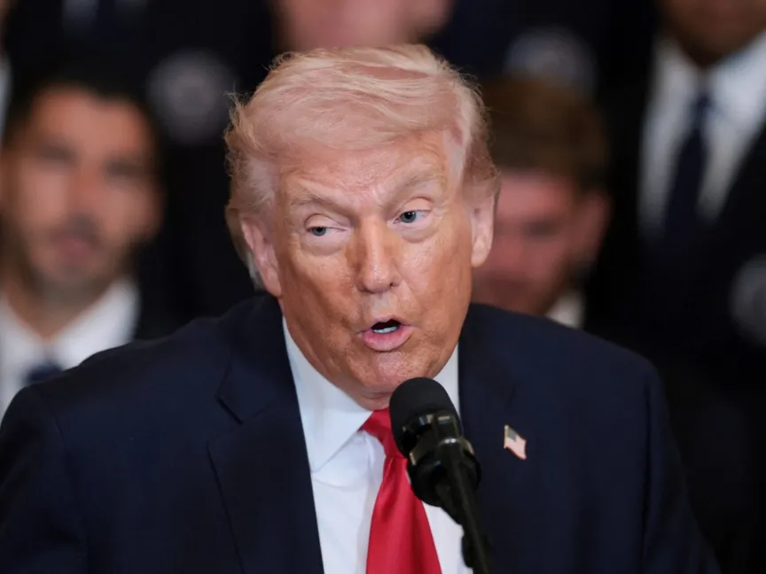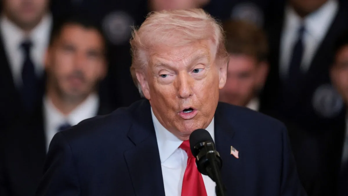 الرئيس الأميركي دونالد ترمب بمؤتمر صحافي في البيت الأبيض خلال استقبال لاعبي فريق إنتر ميامي لكرة القدم. 6 مارس 2026 - Reuters