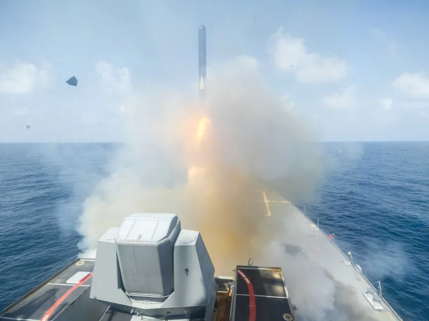 إطلاق صاروخ من فرقاطة أميركية باتجاه إيران. 28 فبراير 2026 - Reuters