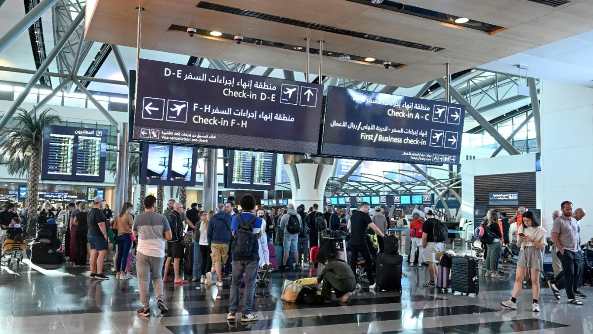 مسافرون ينتظرون في مطار مسقط الدولي بسلطنة عُمان. 5 مارس 2026 - Reuters