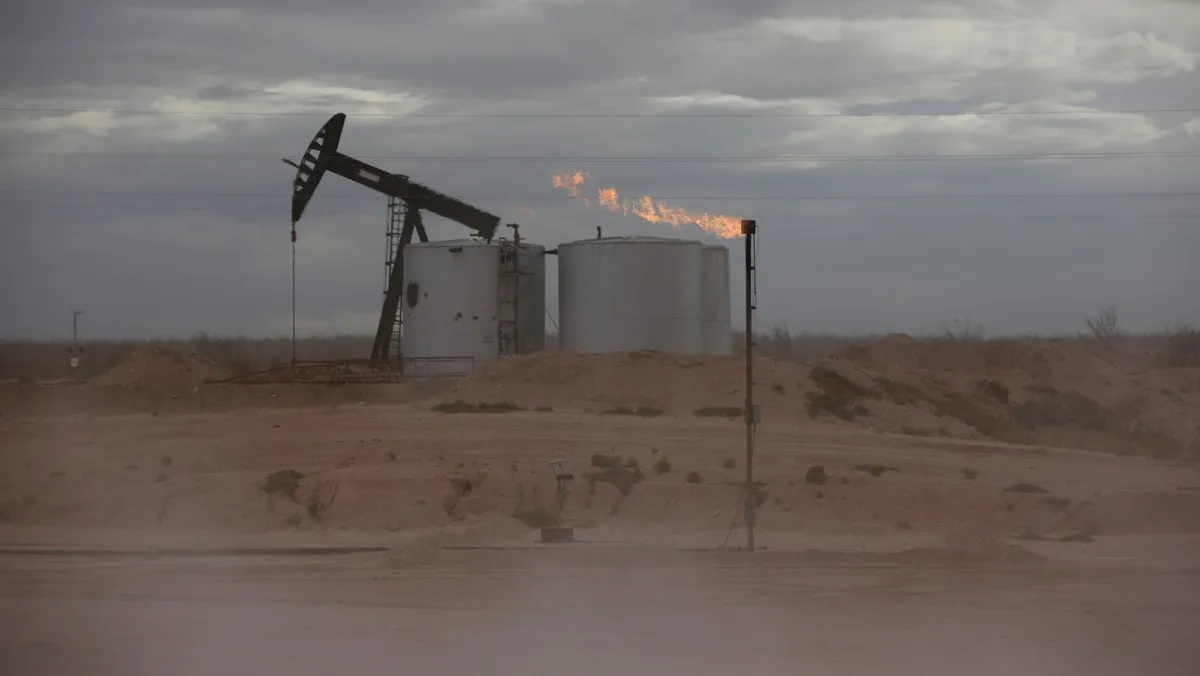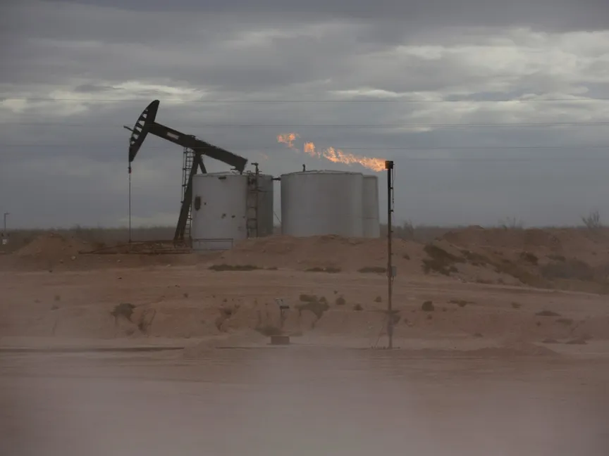 مضخة نفط خام في منصة حفر في مقاطعة لوفينج بولاية تكساس الأميركية. 25 نوفمبر 2019 - REUTERS