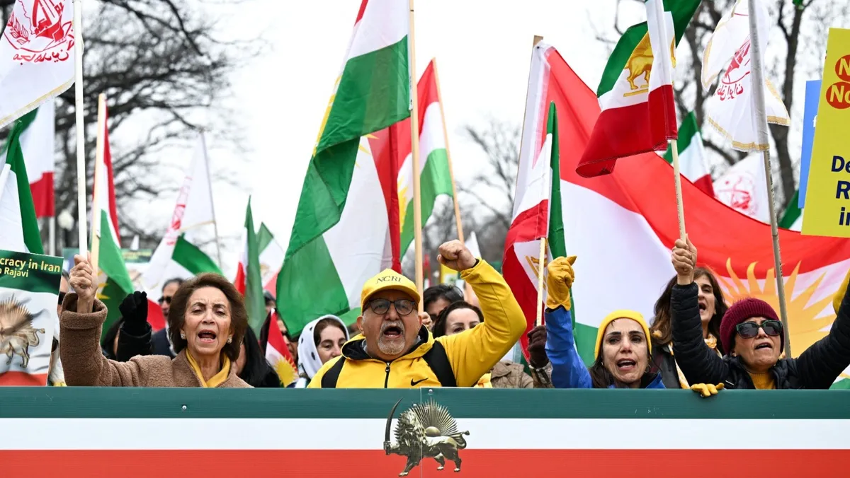 متظاهرون خلال مسيرة "إيران حرة" في واشنطن العاصمة بالولايات المتحدة. 7 مارس 2026 - Reuters