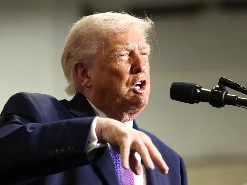 الرئيس الأميركي دونالد ترمب يلقي كلمة خلال زيارة إلى شركة فيرست لوجستيكس كنتاكي. 11 مارس 2026 - Reuters