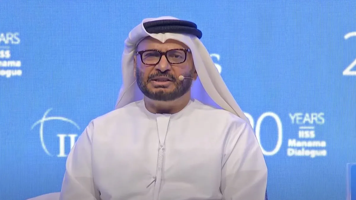 المستشار الدبلوماسي للرئيس الإماراتي أنور قرقاش يتحدث خلال حوار المنامة في البحرين. 8 ديسمبر 2024 - الشرق