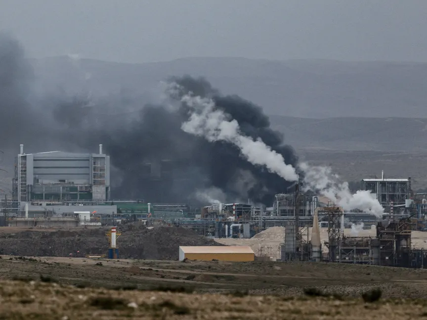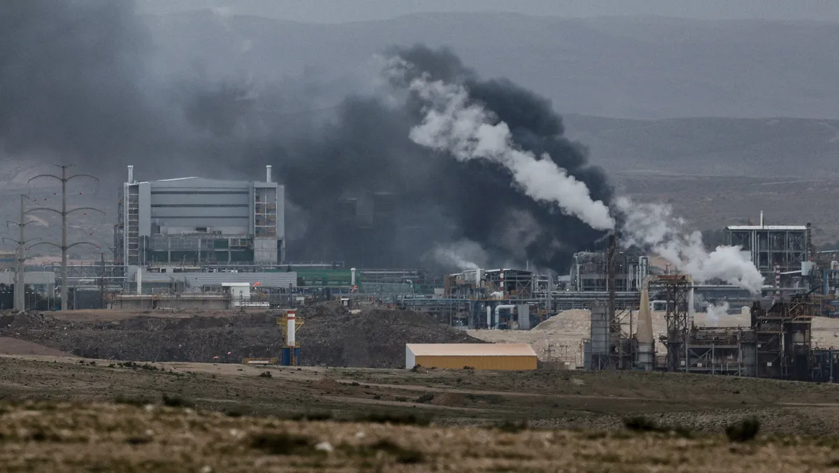 أعمدة الدخان تتصاعد من منشأة جنوب إسرائيل في أعقاب ضربة صاروخية إيرانية . 29 مارس 2026 - Reuters