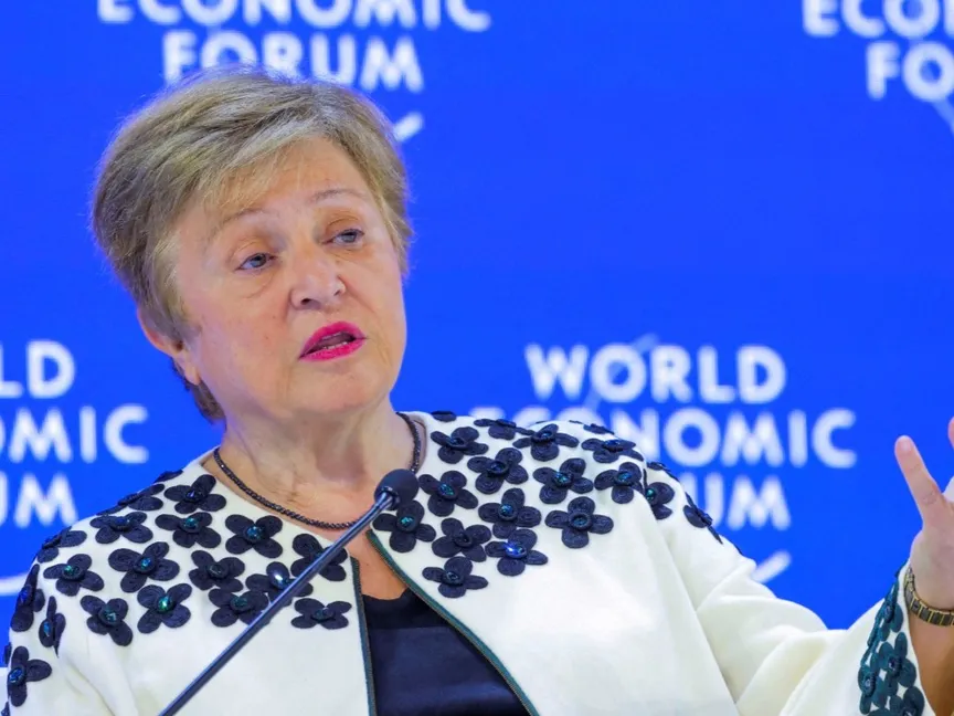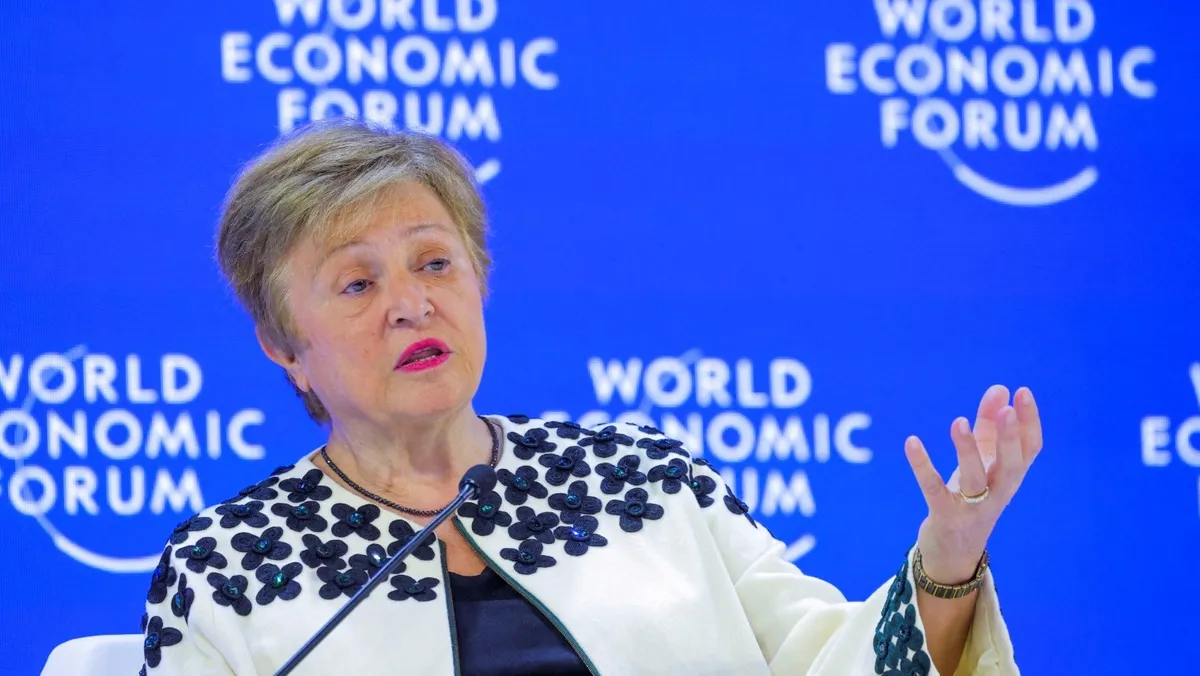 مديرة صندوق النقد الدولي IMF كريستالينا جورجييفا خلال اجتماعات منتدى دافوس الاقتصادي في سويسرا. 23 يناير 2026 - Reuters
