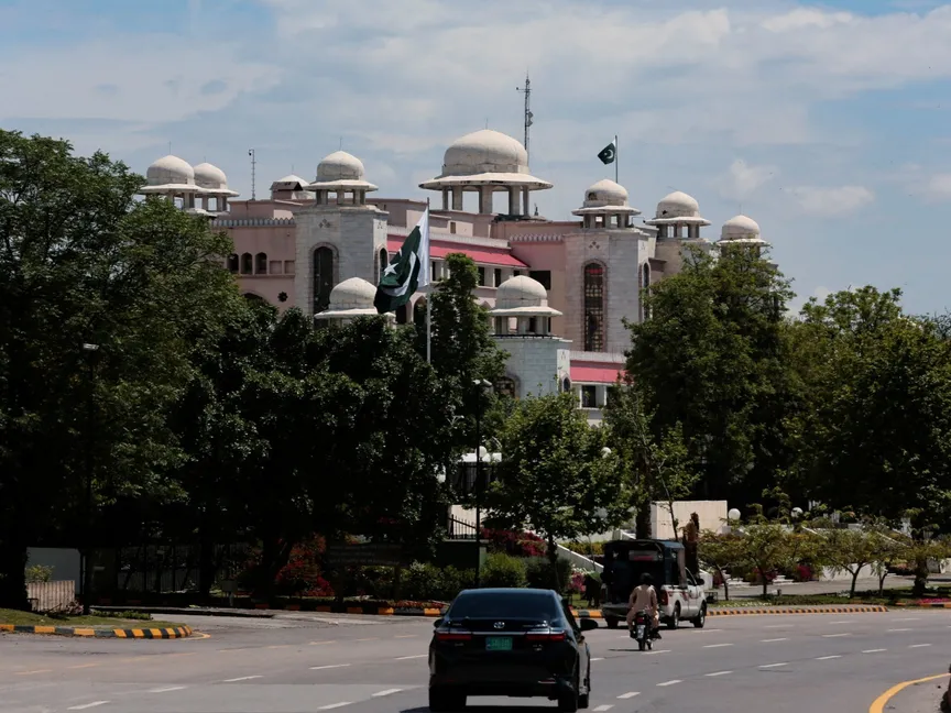 تمر المركبات أمام مبنى مقر إقامة رئيس الوزراء قبيل المحادثات الإيرانية الأميركية في إسلام آباد. باكستان في 9 أبريل 2026 - reuters