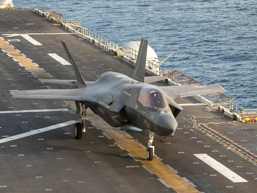 مقاتلة أميركية من طراز 'F-35B Lightning II' تابعة لسلاح مشاة البحرية على حاملة الطائرات 'USS Tripoli (LHA 7)' ضمن منطقة مسؤولية القيادة المركزية الأميركية. 11 أبريل 2026 - @CENTCOM