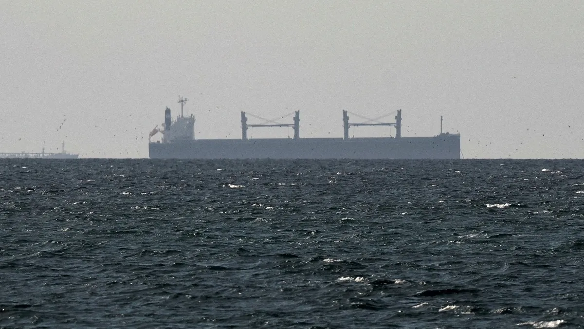 سفينة شحن تعبر مياه الخليج قرب مضيق هرمز، كما تُرى من رأس الخيمة شمال الإمارات، في ظل التوترات المتصاعدة المرتبطة بالحرب الأميركية الإسرائيلية على إيران، 11 مارس 2026. - Reuters