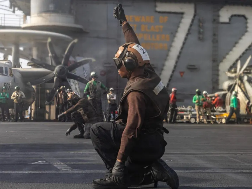 صورة نشرتها القيادة المركزية الأميركية لجنود أميركيين على متن حاملة الطائرات أبراهام لينكولن. 15 أبريل 2026 - CENTCOM