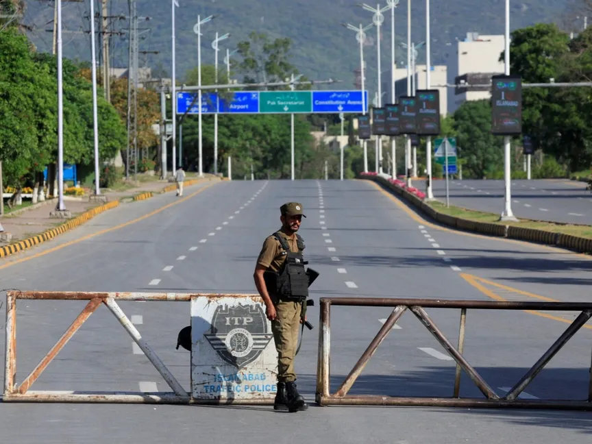 جندي باكستاني يقف على الطريق المؤدي إلى فندق سيرينا في العاصمة إسلام آباد. 20 أبريل 2026 - REUTERS