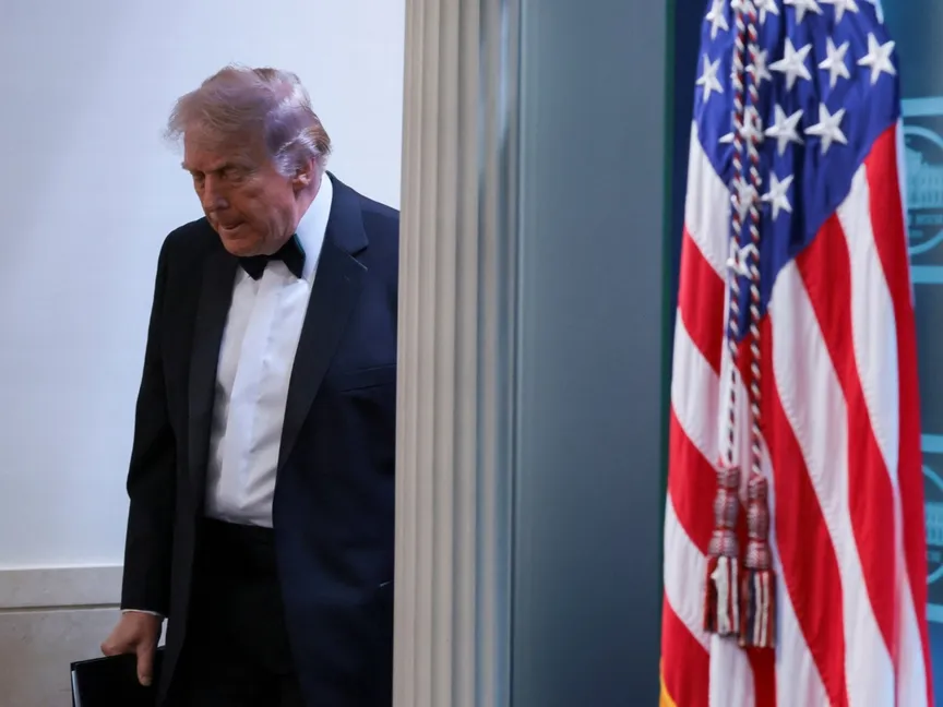 الرئيس الأميركي دونالد ترمب بعد مؤتمر صحافي في البيت الأبيض عقب إجلائه من حفل عشاء المراسلين بسبب إطلاق نار. 26 أبريل 2026 - Reuters