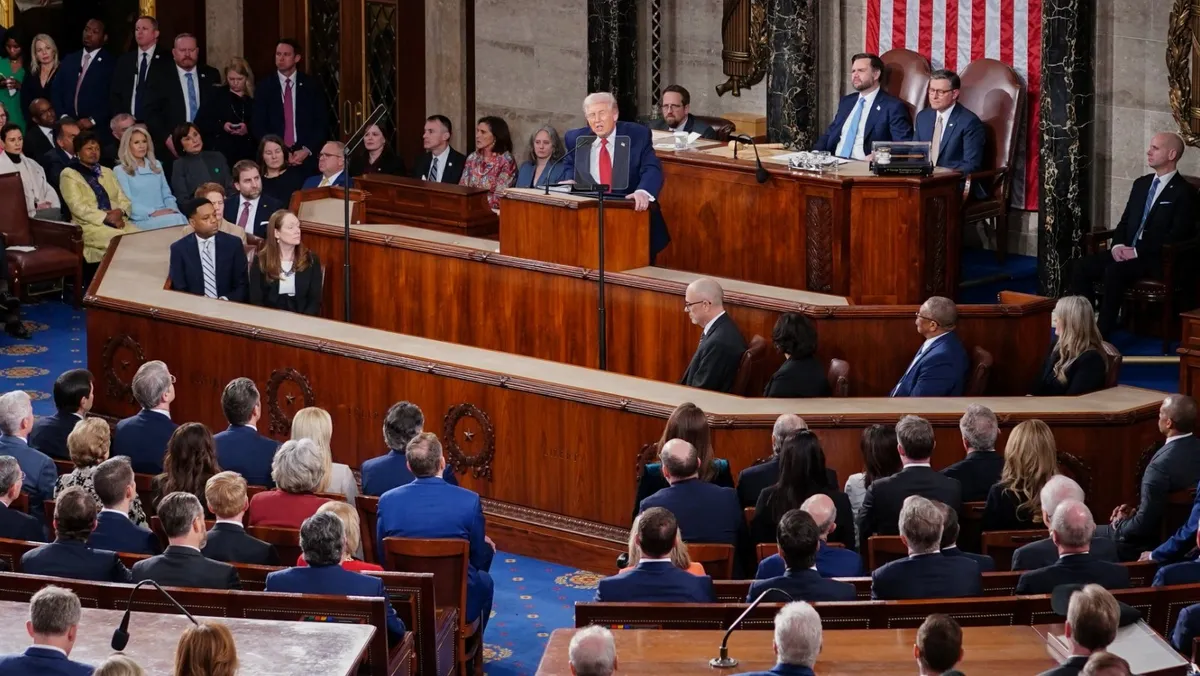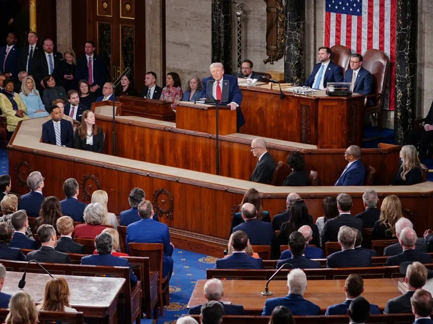 الرئيس الأميركي دونالد ترمب يلقي خطاب حالة الاتحاد في مبنى الكابيتول بالعاصمة واشنطن. 24 فبراير 2026 - REUTERS