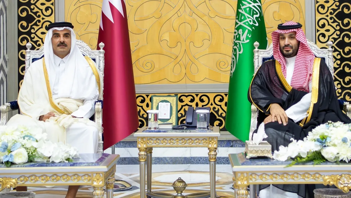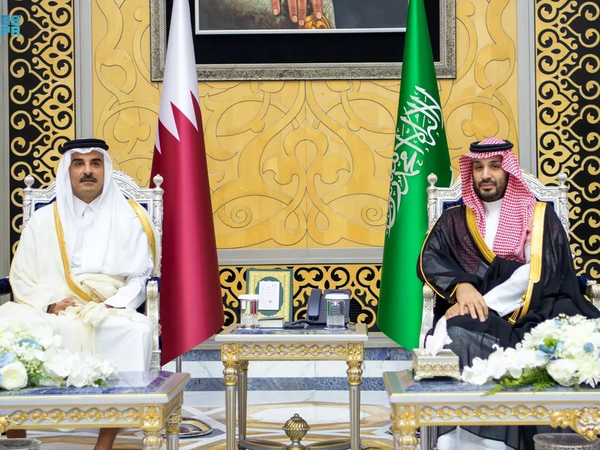 ولي العهد السعودي الأمير محمد بن سلمان يستقبل أمير قطر الشيخ تميم بن حمد في جدة للمشاركة بالقمة الخليجية التشاورية. 28 أبريل 2026 - واس