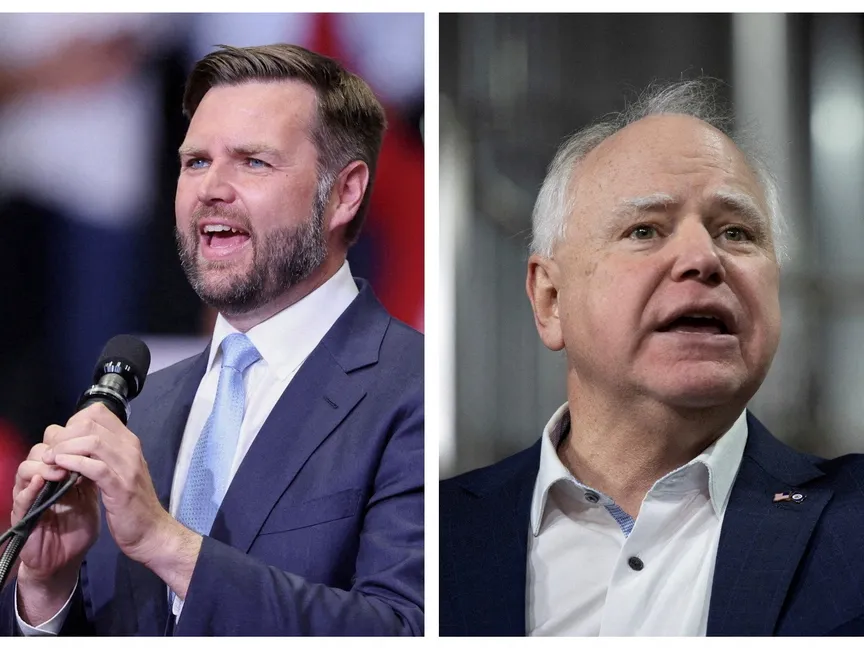 يتواجه المرشح الجمهوري لمنصب نائب الرئيس الأميركي جي دي فانس السيناتور عن ولاية أوهايو، والديمقراطي تيم والز حاكم ولاية مينيسوتا، في مناظرة تستضيفها شبكة CBS News، قبل 5 أسابيع فقط من يوم الانتخابات.
