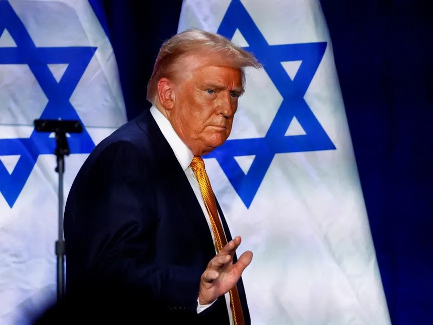 وسعى الرئيس السابق إلى تصوير نفسه على أنه "أكثر دعماً" لإسرائيل والمجتمع اليهودي من هاريس والحزب الديمقراطي، وأشاد بسجله بشأن إسرائيل كرئيس، بما في ذلك قراره بنقل السفارة الأميركية إلى القدس، والاعتراف بالسيادة الإسرائيلية على مرتفعات الجولان السورية، وعمل إدارته بالتوسط في اتفاقيات أبراهام.