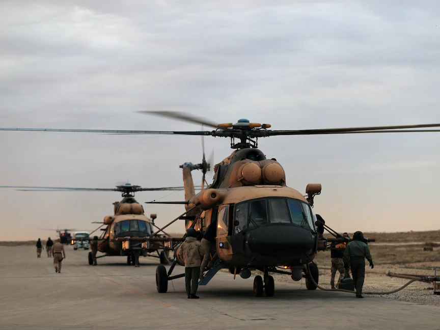 طائرات مروحية تابعة للقوات الجوية العراقية تهبط في قاعدة عين الأسد الجوية في الأنبار بالعراق - 29 ديسمبر 2019 - REUTERS