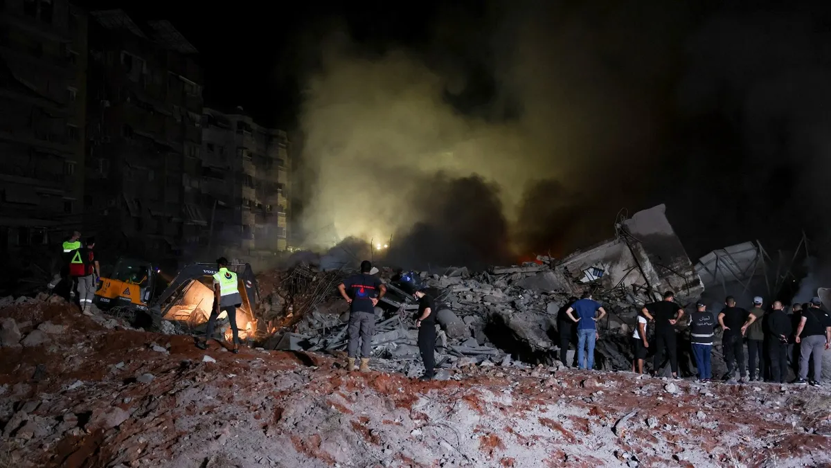 وقال الجيش الإسرائيلي، الجمعة، إنه ينفذ "ضربات موجهة" على وسائل قتالية قال إنها تابعة لجماعة "حزب الله" اللبنانية في الضاحية الجنوبية لبيروت، موضحاً أن هذه الوسائل جرى تخزينها أسفل مبانٍ مدنية، فيما نفى "حزب الله" وجود أي أسلحة في المباني التي تعرضت للقصف.