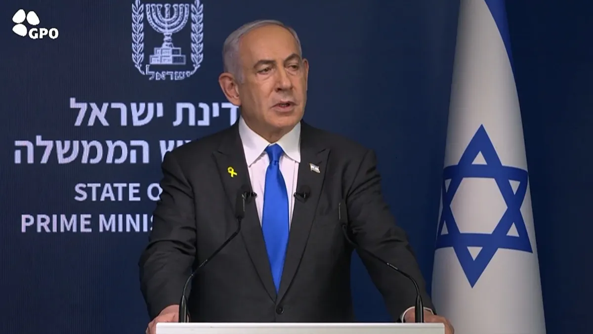 وزعم نتنياهو أن كل الذين عانوا من عنف إيران ووكلائها في لبنان وسوريا وإيران نفسها، كانوا مليئين بالأمل، مدعياً بأن كل مكان في إيران أو الشرق الأوسط "ستصل إليه ذراع إسرائيل الطويلة، واليوم رأيتم مدى صحة ذلك".