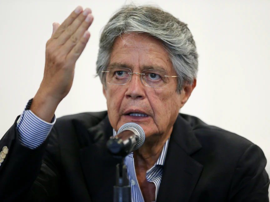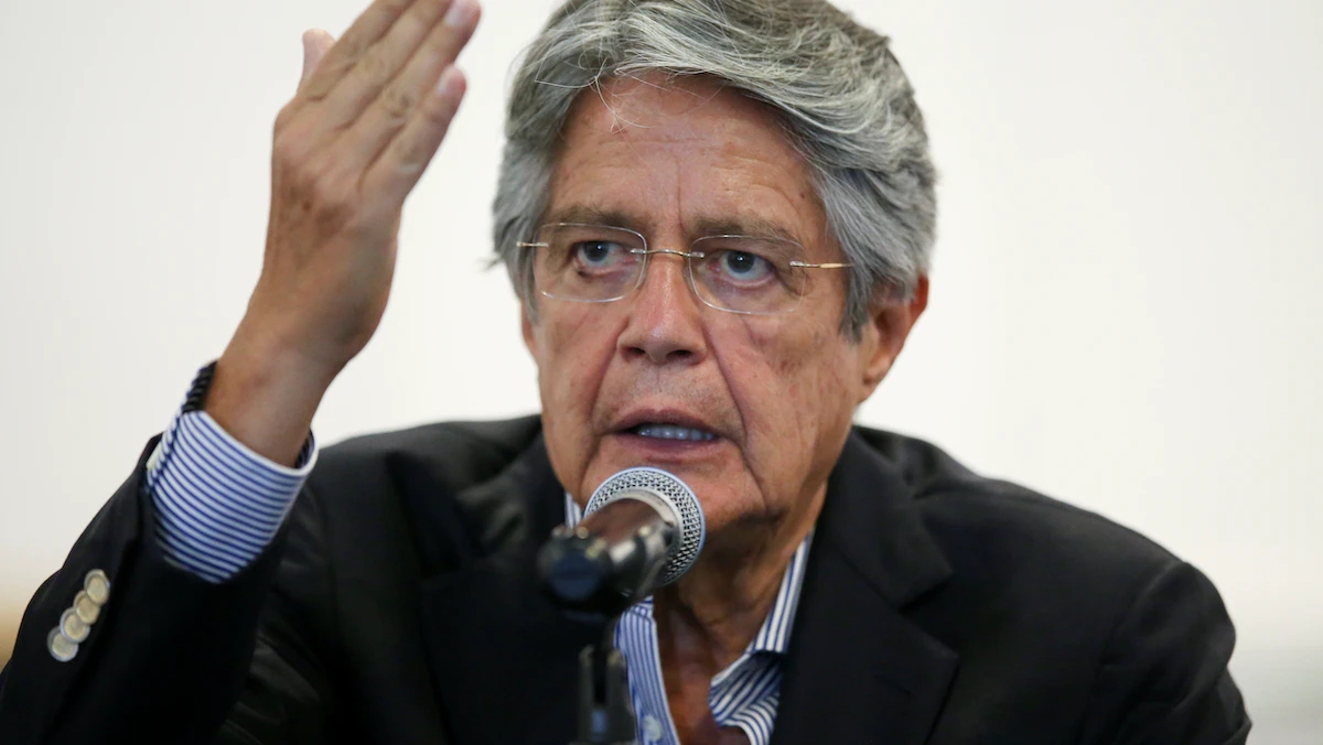 الرئيس الإكوادوري غييرمو لاسو خلال مؤتمر صحافي في كيتو - 12 أبريل 2021 - REUTERS