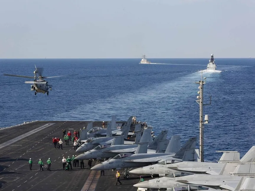 وقال رايدر إن أوستن أصدر توجيهات ببقاء حاملة الطائرات USS Abraham Lincoln في مسرح عمليات القيادة المركزية الأميركية CENTCOM، واستمرار تواجد مجموعة USS Wasp البرمائية، بالإضافة إلى وحدة المشاة البحرية (ARG/MEU) بشرق البحر الأبيض المتوسط.