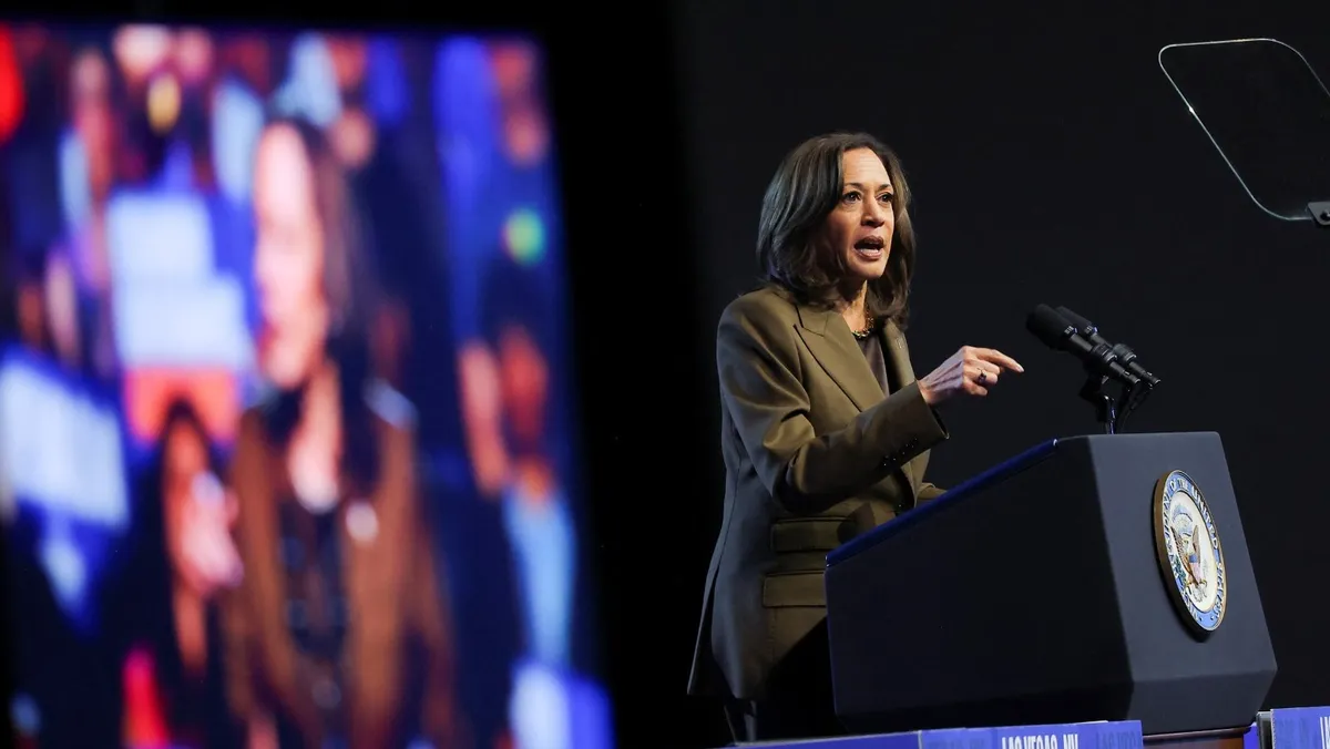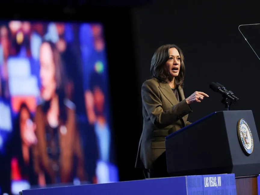المرشحة الديمقراطية للرئاسة ونائبة الرئيس الأميركي كامالا هاريس خلال فعالية انتخابية في لاس فيجاس بولاية نيفادا. 29 سبتمبر 2024 - reuters