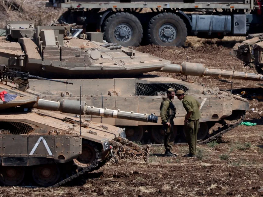 جنود من الجيش الإسرائيلي بجوار مركبات مدرعة في شمال إسرائيل. 30 سبتمبر 2024 - REUTERS