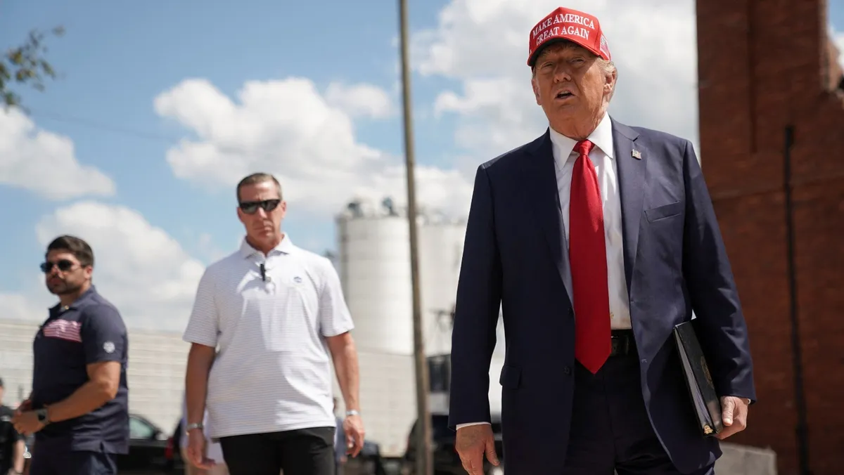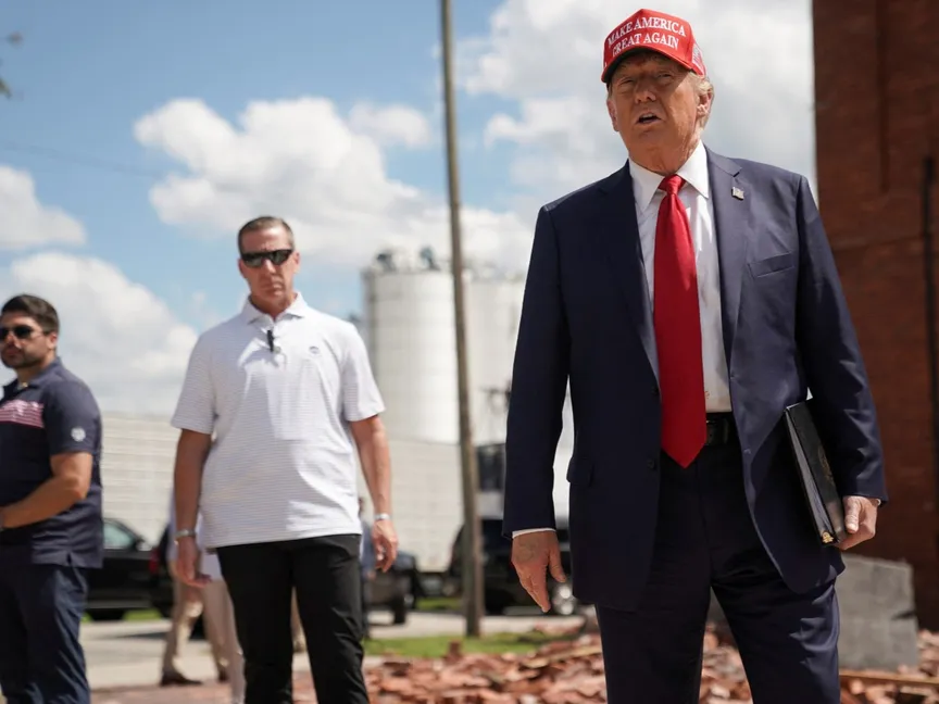 الرئيس الأميركي السابق دونالد ترمب يحضر مؤتمراً عن الأضرار التي أحدثها إعصار هيلين في مدينة فالدوستا بولاية جورجيا. 30 سبتمبر 2024 - REUTERS