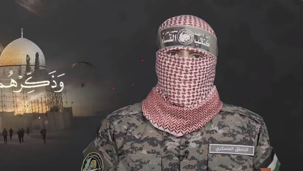 أبو عبيدة المتحدث الرسمي باسم كتائب القسام في كلمة بمناسبة مرور عام على عملية "طوفان الأقصى". - صورة شاشة