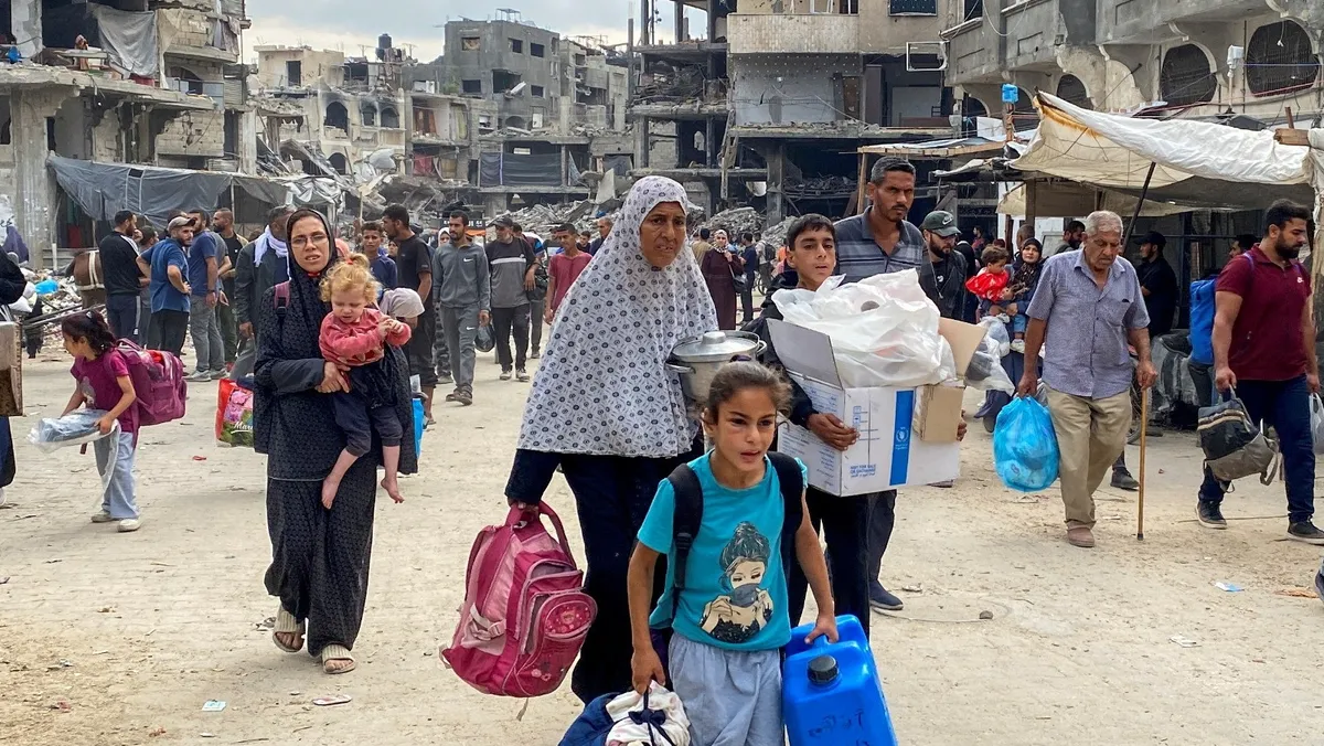 فلسطينيون نازحون أثناء فرارهم من مناطق في شمال قطاع غزة في أعقاب أمر إخلاء إسرائيلي في جباليا. 6 أكتوبر 2024 - REUTERS