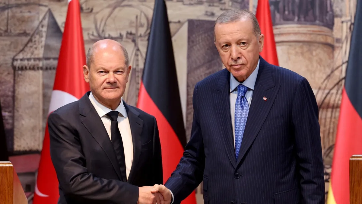 بحسب ما أفادت وكالة "الأناضول" التركية الرسمي، بحث أردوغان وشولتز خلال لقائهما عدداً من القضايا، من بينها ملف المهاجرين، والحرب الإسرائيلية في غزة ولبنان.