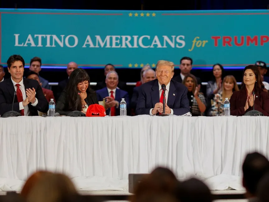 المرشح الجمهوري لانتخابات الرئاسة الأميركية دونالد ترمب خلال لقاء مع قادة من المجتمع اللاتيني في منتجعه للجولف بجنوب فلوريدا. 22 أكتوبر 2024 - REUTERS