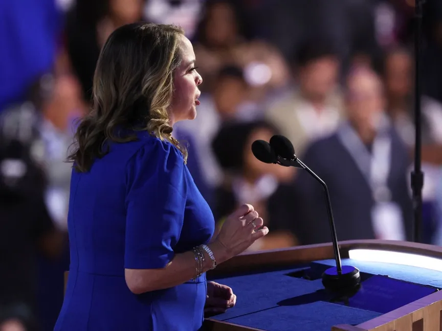 مسؤولة الأمن القومي السابقة في إدارة دونالد ترمب أوليفيا خلال فاعليات المؤتمر الوطني للحزب الديمقراطي. 21 أغسطس 2024 - reuters