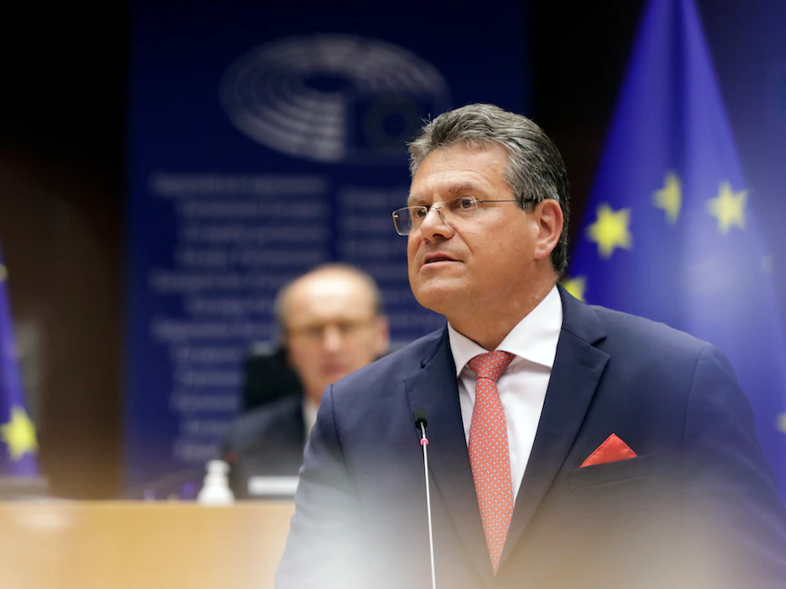 ماروس سيفكوفيتش مفوّض الاتحاد الأوروبي للعلاقات مع بريطانيا - REUTERS