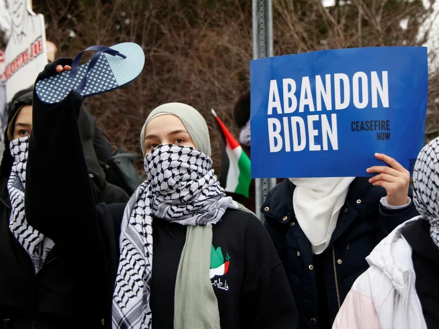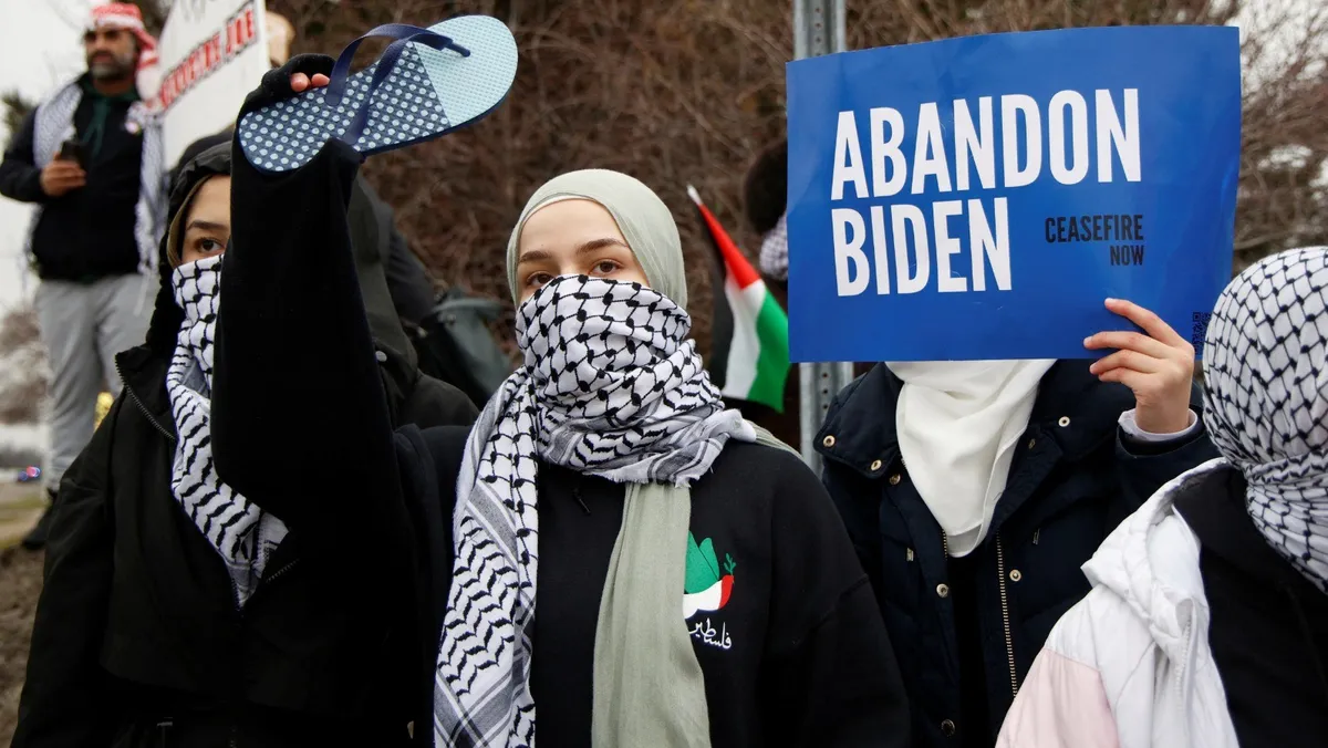 متظاهرون عرب ومسلمون ضد ترشح الرئيس الأميركي جو بايدن لفترة ثانية بسبب موقفه من غزة، وارين، ميشيجان. 1 فبراير 2024 - Reuters