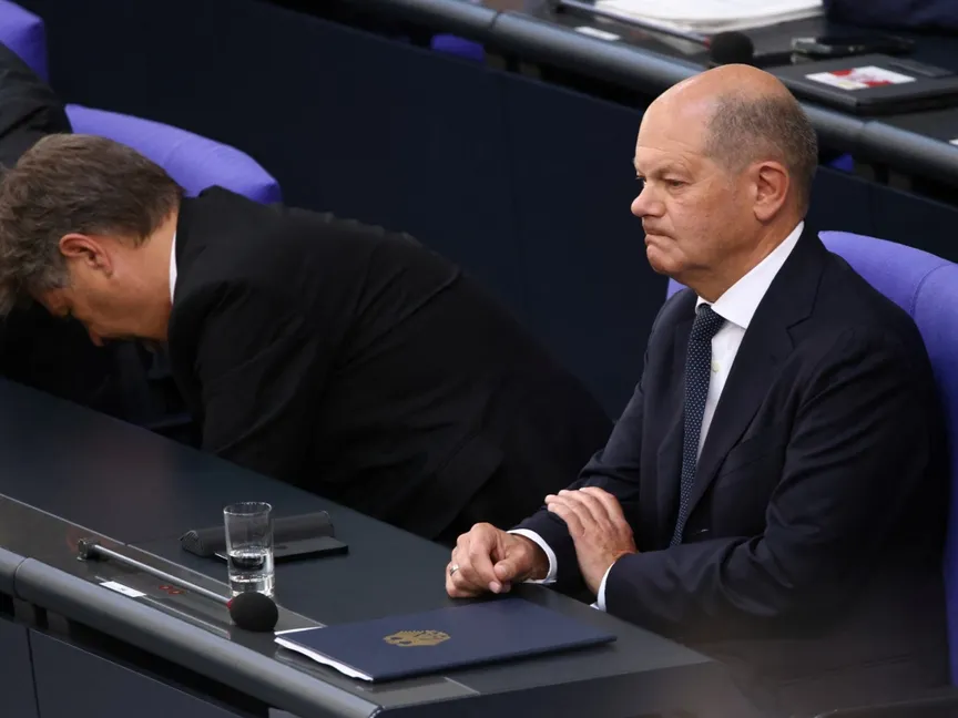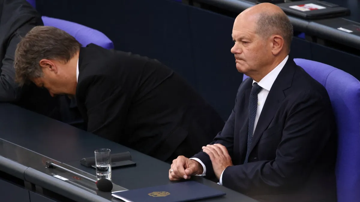 المستشار الألماني أولاف شولتز ووزير الاقتصاد والمناخ خلال جلسة للبوندستاج في برلين- 26 يونيو 2024 - Reuters