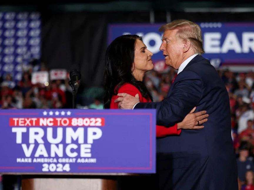 واعتبر ترمب أنها "تحظى بدعم واسع من كلا الحزبين" مشيراً إلى ماضيها في الحزب الديمقراطي. وقال إنها الآن "جمهورية بفخر" ،مضيفاً: "أعلم أن تولسي ستجلب الروح الشجاعة التي ميزت مسيرتها المهنية اللامعة إلى مجتمع الاستخبارات لدينا، وستدافع عن حقوقنا الدستورية، وستحقق السلام من خلال القوة".