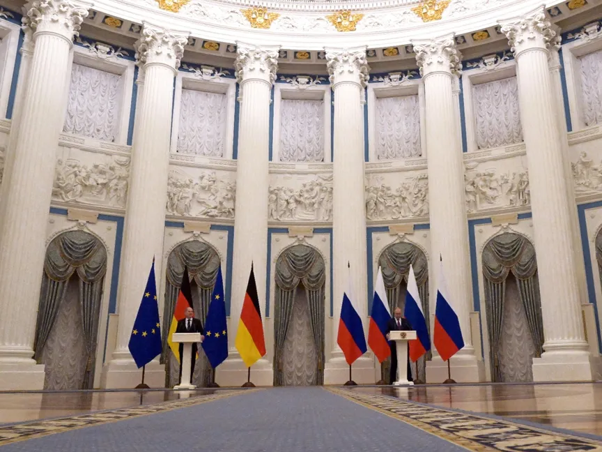 قال المستشار الألماني أولاف شولتز إنه حث الرئيس الروسي فلاديمير بوتين خلال اتصال هاتفي هو الأول منذ عامين، الجمعة، على "إنهاء الحرب في أوكرانيا وسحب القوات"، مشدداً على أن "ألمانيا ستدعم أوكرانيا طالما اقتضى الأمر"، فيما شدد الأخير على وجوب أن تأخذ الاتفاقات المحتملة بشأن أوكرانيا في الاعتبار "مصالح روسيا في المجال الأمني"، وسط انتقادات أوكرانية للاتصال الذي اعتبرته "مساعدة للحد من عزلة بوتين".
