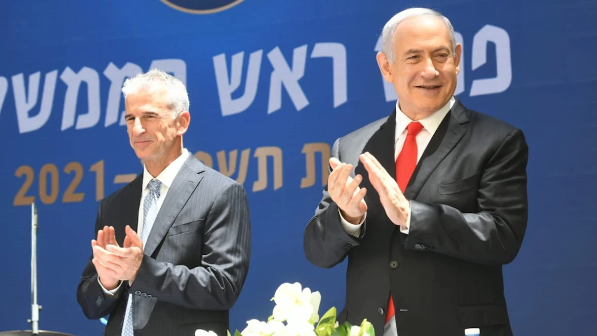 رئيس الوزراء الإسرائيلي بنيامين نتنياهو برفقة ديفيد برنيع الرئيس الجديد لجهاز الاستخبارات "الموساد" - Twitter/Israelipm_ar