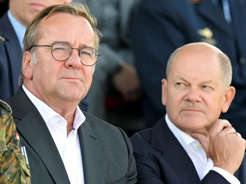 المستشار الألماني أولاف شولتز ووزير دفاعه بوريس بيستوريوس، 4 سبتمبر 2024 - Reuters