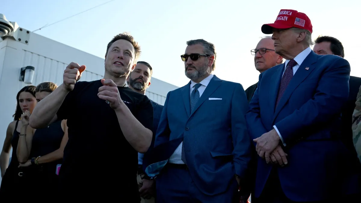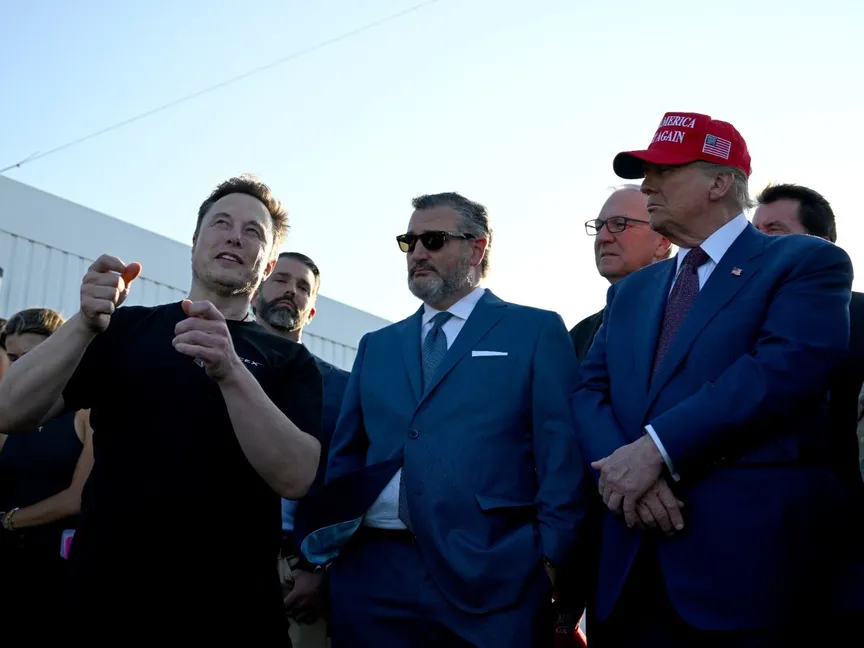 الرئيس الأميركي المنتخب دونالد ترمب رفقة رجل الأعمال إيلون ماسك خلال عملية إطلاق صاروخ 'ستارشيب' في تكساس. 20 نوفمبر 2024 - Reuters