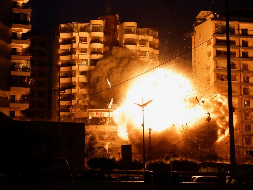 وفي بيروت، شنت إسرائيل الاثنين، غارات جوية عنيفة على الضواحي الجنوبية مما أدى إلى تطاير الشظايا فوق العاصمة اللبنانية