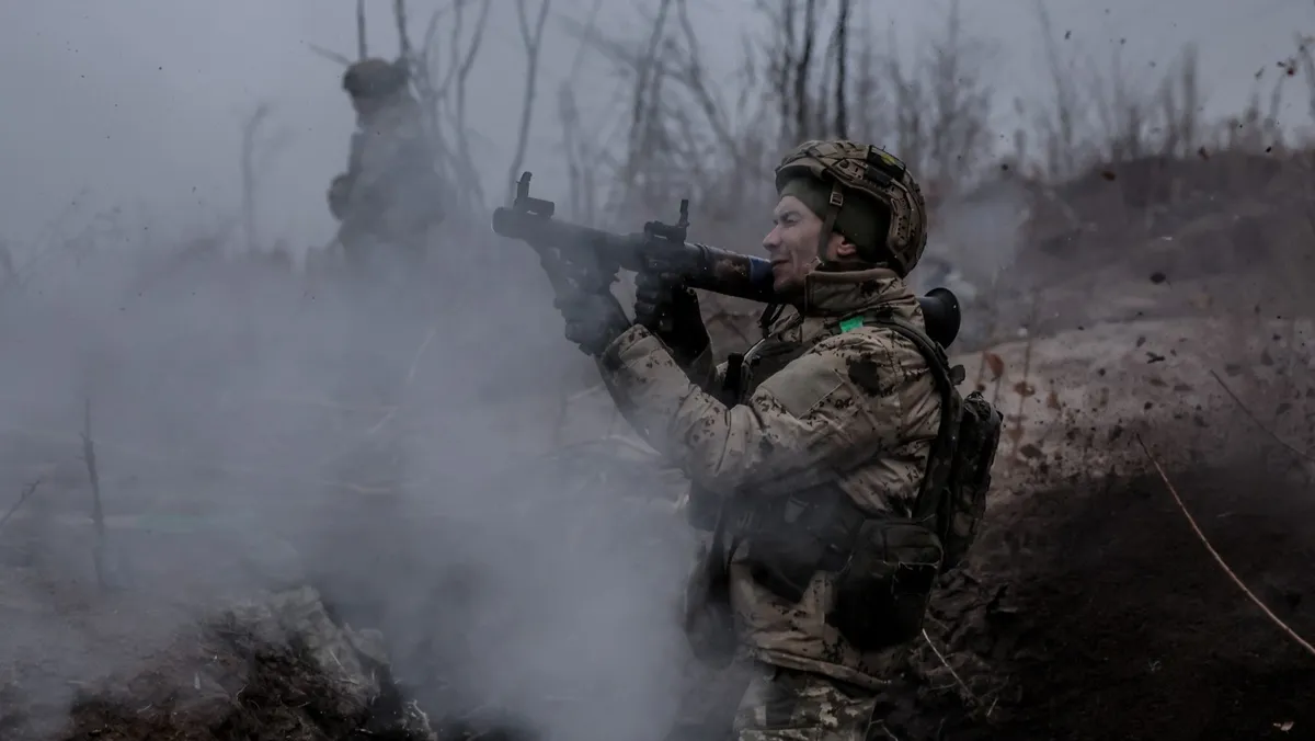 جندي أوكراني يطلق قاذفة قنابل من طراز RPG-7 أثناء مناورة، وسط هجوم روسيا على أوكرانيا، في منطقة دونيتسك، أوكرانيا. 29 نوفمبر 2024 - reuters