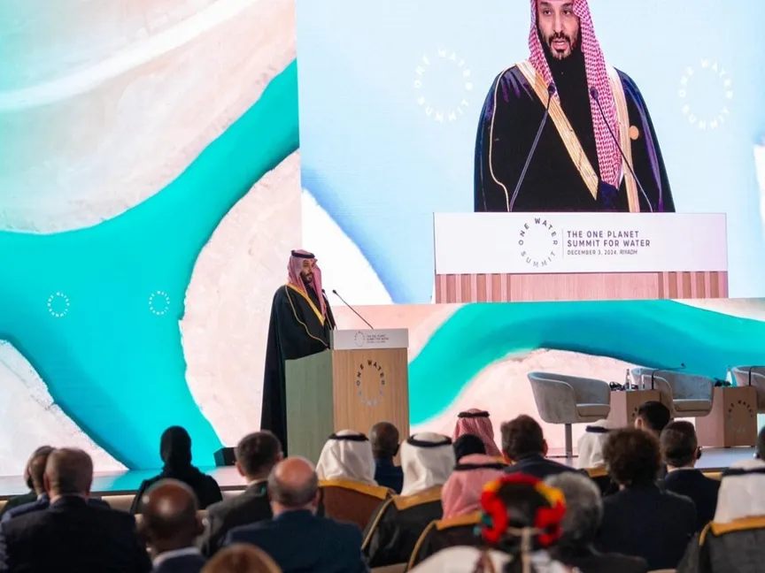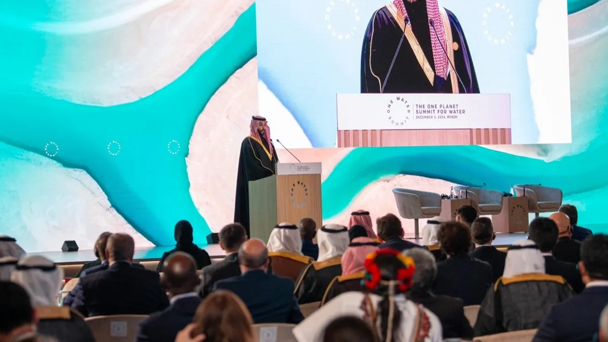 وأضاف الأمير محمد بن سلمان، في كلمته خلال قمة "المياه الواحدة" المنعقدة بالرياض، أن القمة "تعكس عزمنا وإصرارنا على مواصلة العمل المشترك لمواجهة التحديات البيئية المتعلقة بندرة المياه والجفاف".