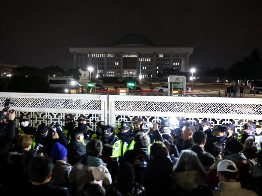 وكان رئيس برلمان كوريا الجنوبية قال إن إعلان الأحكام العرفية "باطل"، وتم منع الدخول والخروج من مقر البرلمان (الجمعية الوطنية) بعد إعلان الأحكام العرفية.