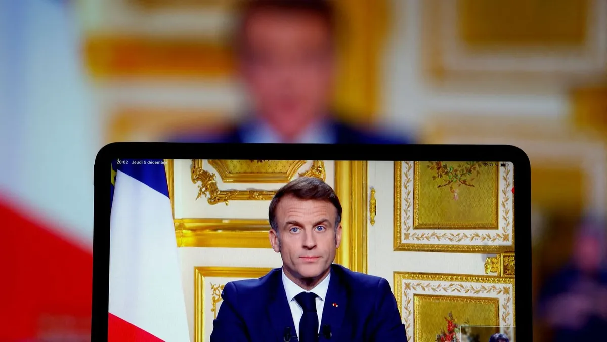 الرئيس الفرنسي إيمانويل ماكرون يلقي كلمة متلفزة للأمة بعد انهيار الحكومة. 5 ديسمبر 2024 - REUTERS