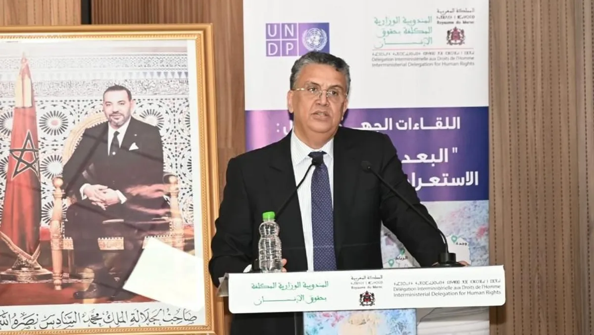 وزير العدل المغربي عبد اللطيف وهبي خلال ندوة بالعاصمة الرباط- 29 يونيو 2022 - "وزارة العدل المغربية"